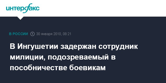 В Ингушетии задержан сотрудник милиции, подозреваемый в пособничестве боевикам