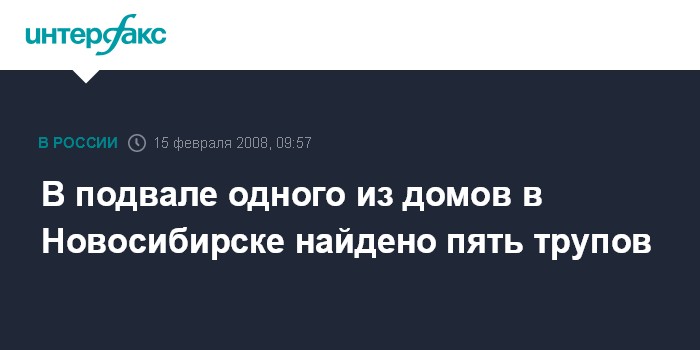 Новосибирск. 15 февраля. INTERFAX.RU - Трупы пяти мужчин с ножевыми ранениями и телесными повреждениями обнаружены в подвале жилого дома в Октябрьском районе Новосибирска, сообщил агентству "Интерфакс-Сибирь" источник в правоохранительных органах.