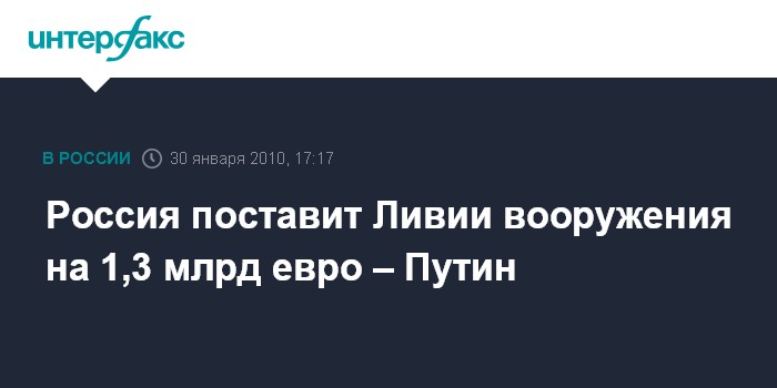 Россия поставит Ливии вооружения на 1,3 млрд евро – Путин