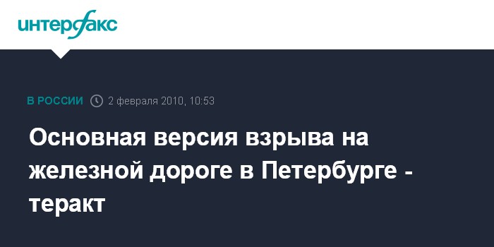 Москва. 2 февраля. INTERFAX.RU – Следственные органы рассматривают теракт как основную версию взрыва на железной дороге на юге Петербурга, который произошел в ночь на вторник, сообщил журналистам руководитель Северо-западного следственного управления на транспорте Анатолий Квашнин.