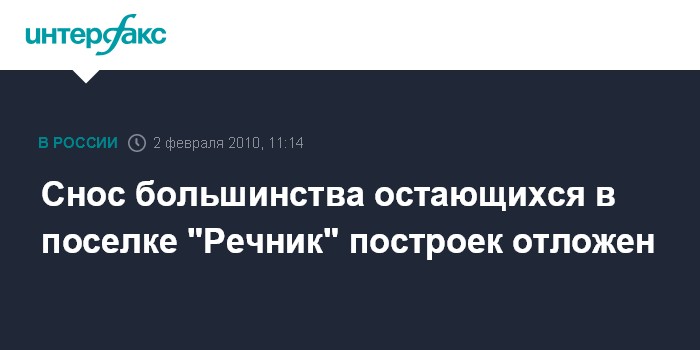 Москва. 2 февраля. INTERFAX.RU – Призывы Общественной палаты (ОП) РФ к судебным приставам отложить снос домов в "Речнике" существенно не изменят ситуацию в московском поселке, поскольку большинству жителей отсрочка уже предоставлена, сообщили в Федеральной службе служебных приставов России.