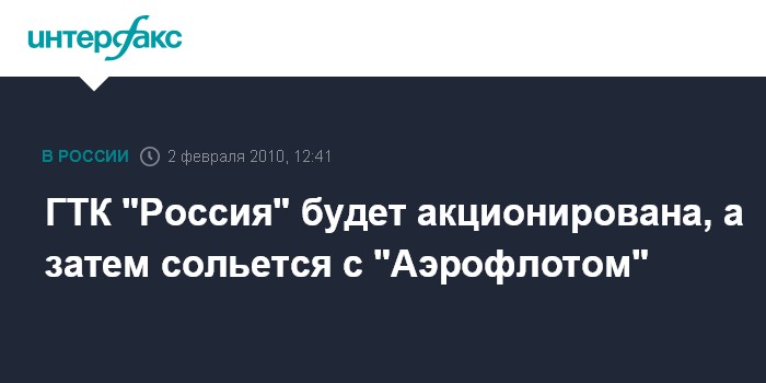 ГТК "Россия" будет акционирована, а затем сольется с "Аэрофлотом"