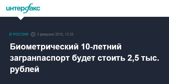 Биометрический 10-летний загранпаспорт будет стоить 2,5 тыс. рублей
