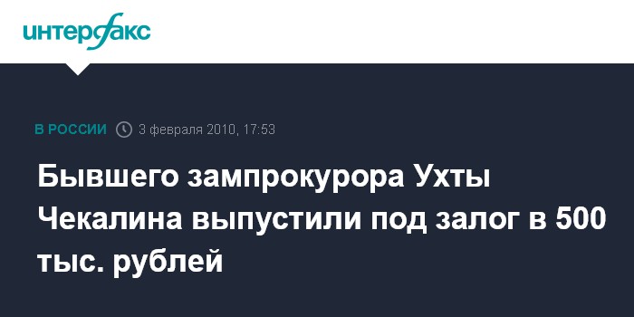 "В рамках расследуемого следственным управлением СКП РФ по Республике Коми уголовного дела в отношении Чекалина по факту дачи заведомо ложных показаний в суде в качестве свидетеля ему избрана мера пресечения в виде залога", - говорится в сообщении, размещенном на сайте комитета.