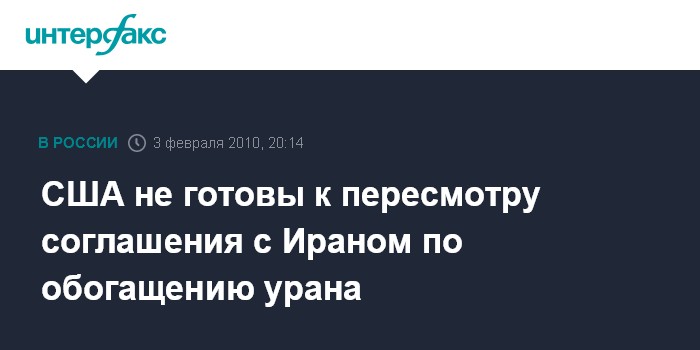 Лондон. 3 февраля. INTERFAX.RU - Вашингтон не готов изменять прежнее соглашение об отправке иранского урана на дообогащение за рубеж, сообщила в среду BBC со ссылкой на представителя госдепа США Филиппа Кроули.