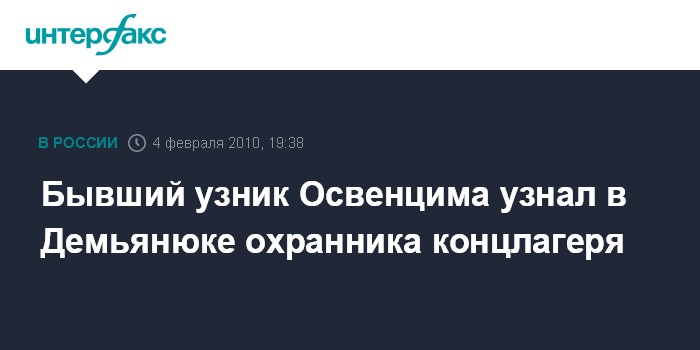 Москва. 4 февраля. INTERFAX.RU - Новый свидетель по делу Ивана Демьянюка, бывший заключенный концлагеря "Освенцим" Алексей Вайцен заявил, что узнал в подсудимом бывшего охранника нацистского лагеря, сообщает в четверг телеканал "НТВ" со ссылкой на газету Financial Times Deutschland.