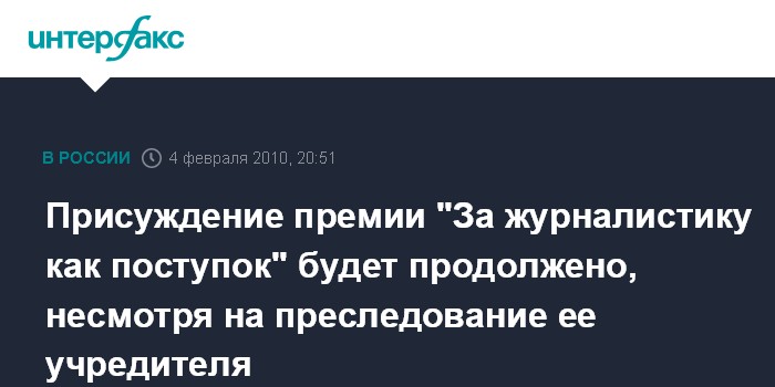Присуждение премии "За журналистику как поступок" будет продолжено, несмотря на преследование ее учредителя