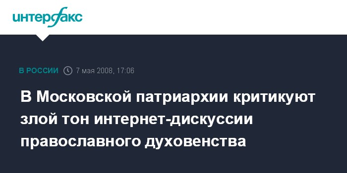 Москва. 7 мая. INTERFAX.RU - В Московской патриархии считают недопустимым обсуждение внутрицерковных проблем, которое практикуют в блогах и на интернет-форумах некоторые православные священнослужители.