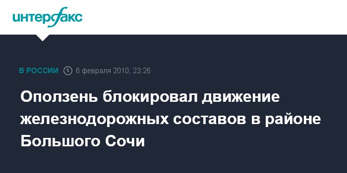 Ростов-на-Дону. 6 февраля. ИНТЕРФАКС-ЮГ - Из-за схода оползня на железнодорожное полотно в районе Якорной щели (Большой Сочи) перекрыто движение поездов.