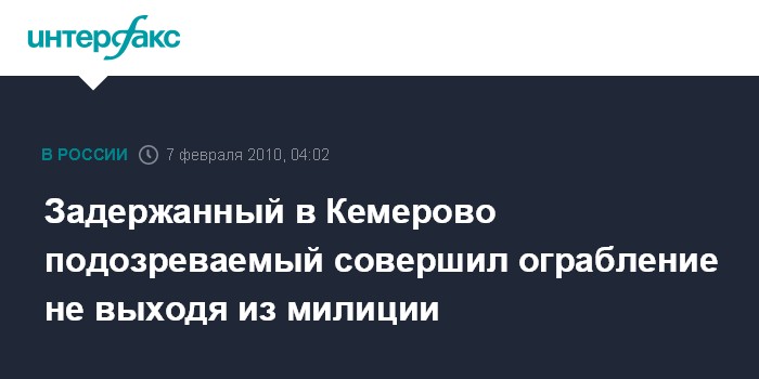 Задержанный в Кемерово подозреваемый совершил ограбление не выходя из милиции