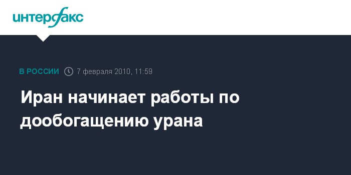 Москва. 7 февраля. INTERFAX.RU - Президент Ирана Махмуд Ахмадинежад поручил национальной Организации по атомной энергии начать работы по обогащению урана до уровня 20 процентов. Он заявил об этом на состоявшейся в Тегеране церемонии открытия выставки лазерных технологий, сообщает информационный телеканал "Россия-24". "Ранее я говорил, что нужно дать срок от 2 до 3 месяцев для заключения договора об обмене ядерным топливом. Если они не согласятся с нашими условиями, мы начнем дообогащать уран сами", - подчеркнул М.Ахмадинежад на выставке, репортаж об открытии которой показало иранское телевидение.