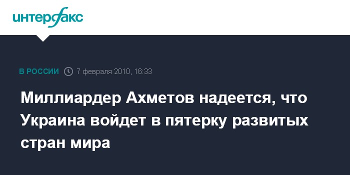 Миллиардер Ахметов надеется, что Украина войдет в пятерку развитых стран мира