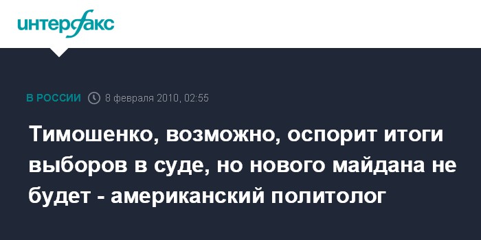 "Сейчас главный вопрос в том, сможет ли Юлия Тимошенко признать свое поражение на выборах, если ЦИК объявит Януковича победителем, или пойдет в суд" - сказал американский политолог "Интерфаксу" в понедельник.