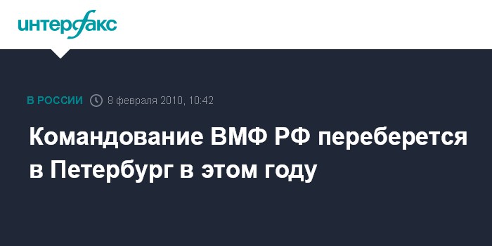 Москва. 8 февраля. INTERFAX.RU - Главный штаб Военно-морского флота России вместе с главкомом адмиралом Владимиром Высоцким переедет из Москвы в Санкт-Петербург до конца текущего года, сообщил "Интерфаксу-АВН" в понедельник высокопоставленный источник в главкомате ВМФ.