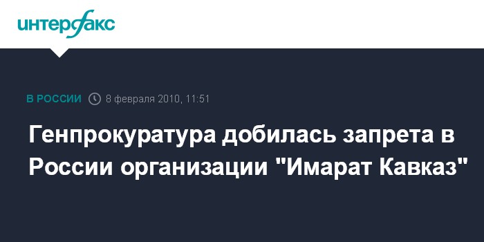 Москва. 8 февраля. INTERFAX.RU - Верховный суд РФ запретил деятельность организации "Имарат Кавказ" как террористической.
