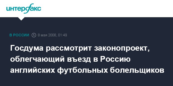 Авторы законопроекта отмечают, что данная мера облегчит приезд в Москву футбольных болельщиков. 21 мая в российской столице пройдет финал Лиги чемпионов УЕФА в котором встретятся английские клубы "Челси" и "Манчестер Юнайтед". Ожидается, что в Москву приедут более 40 тыс. британцев.