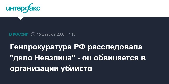 По версии следствия, отметили в Генпрокуратуре РФ, за период 1998-2002 гг. членами организованной группы по указанию Л.Невзлина были совершены убийства директора ТОО "ТФ "Феникс" Валентины Корнеевой, главы администрации г. Нефтеюганска Ханты-Мансийского автономного округа Владимира Петухова (при этом был ранен его охранник Вячеслав Кокошкин), а также водителя управляющего компании "Ист Петролеум Хандельсгез м.б.Х" Евгения Рыбина - Николая Федотова.