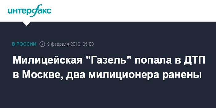 Москва. 9 февраля. ИНТЕРФАКС-МОСКВА - Двое сотрудников милиции пострадали в результате автомобильной аварии на северо-востоке Москвы рано утром во вторник, сообщил "Интерфаксу" источник в правоохранительных органах.