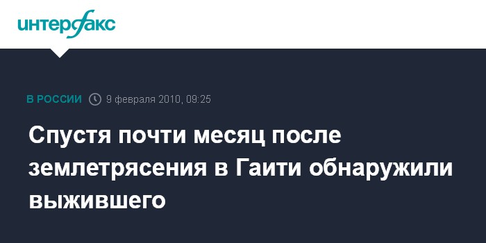 Москва. 9 февраля. INTERFAX.RU - Живой 28-летний мужчина извлечен из-под обломков здания в столице Гаити Порт-о-Пренсе, рухнувшего вовремя недавнего разрушительного землетрясения 12 января, сообщает американский телеканал CNN.