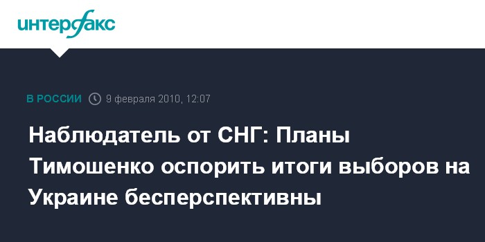 Наблюдатель от СНГ: Планы Тимошенко оспорить итоги выборов на Украине бесперспективны