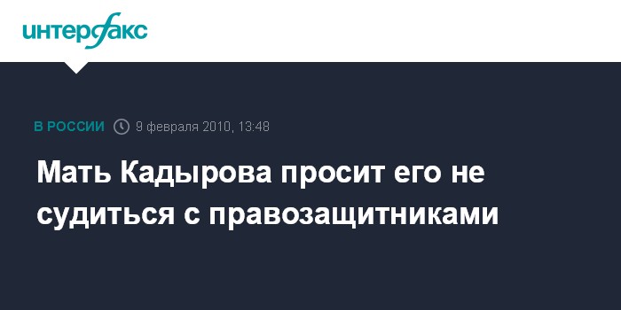 Москва. 9 февраля. INTERFAX.RU - Аймани Кадырова - мать президента Чечни Рамзана Кадырова - настоятельно просит сына прекратить судебные разбирательства в отношении правозащитников Олега Орлова и Людмилы Алексеевой, учитывая возраст этих людей. "Чеченские обычаи не позволяют вступать в споры с пожилыми людьми, в основе вековых традиций чеченцев всегда лежало почитание старших и уважение к ним, - заявила Кадырова во вторник. - Чеченцы всегда уступали старшим по возрасту, даже если были не согласны с их мнением. Исходя из этого, я прошу прекратить судебные разбирательства в отношении Орлова и Алексеевой".
