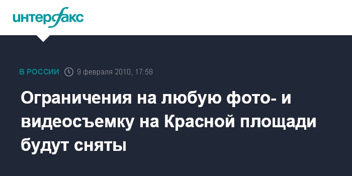 Москва. 9 февраля. INTERFAX.RU - Федеральная служба охраны (ФСО) подготовила документы на снятие всех ограничений на любительскую и профессиональную съемку на Красной площади. "В настоящее время подготовлены изменения в порядок проведения фото- и видеосъемок на Красной площади. Соответствующий приказ ФСО РФ будет размещен на официальном сайте Федеральной службы охраны в целях проведения правовой экспертизы", - говорится в сообщении центра по связям с прессой и общественностью ФСО, поступившем во вторник в "Интерфакс".