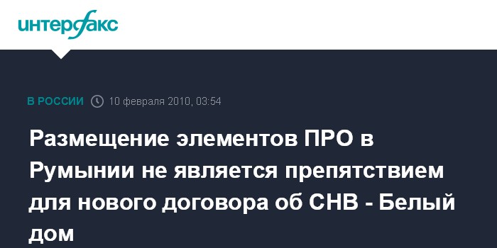Размещение элементов ПРО в Румынии не является препятствием для нового договора об СНВ - Белый дом