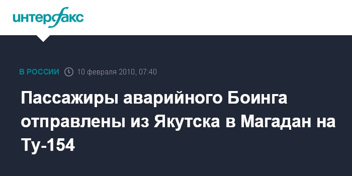 Пассажиры аварийного Боинга отправлены из Якутска в Магадан на Ту-154