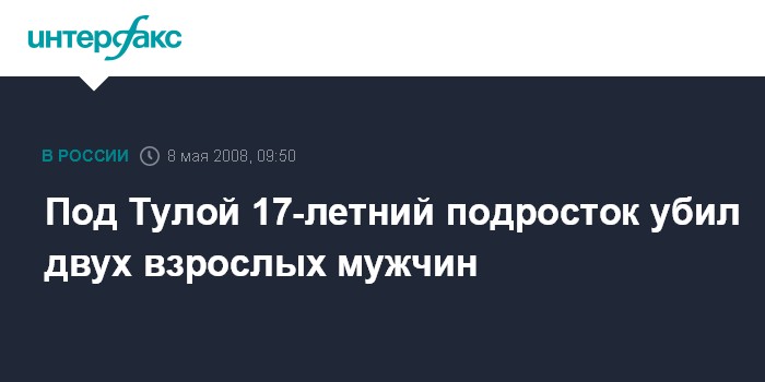 Москва. 8 мая. INTERFAX.RU - В Тульской области 17-летний юноша забил до смерти двух взрослых мужчин, сообщили "Интерфаксу" в Следственном комитете при прокуратуре РФ.