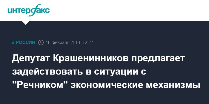 Депутат Крашенинников предлагает задействовать в ситуации с "Речником" экономические механизмы