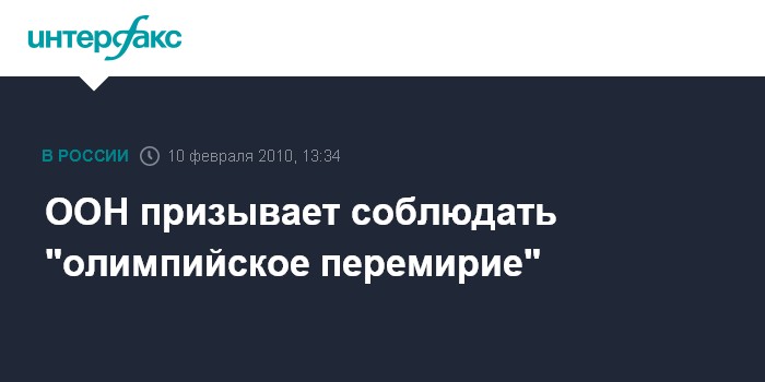 Москва. 10 февраля. INTERFAX.RU - Накануне зимних Олимпийских игр Генеральный секретарь Пан Ги Мун и председатель Генеральной Ассамблеи ООН Али Абдель Салам ат-Трейки призвали международное сообщество к соблюдению "олимпийского перемирия", сообщает центр новостей ООН. Игры XXI зимней Олимпиады начинаются 12 февраля в канадском Ванкувере.
