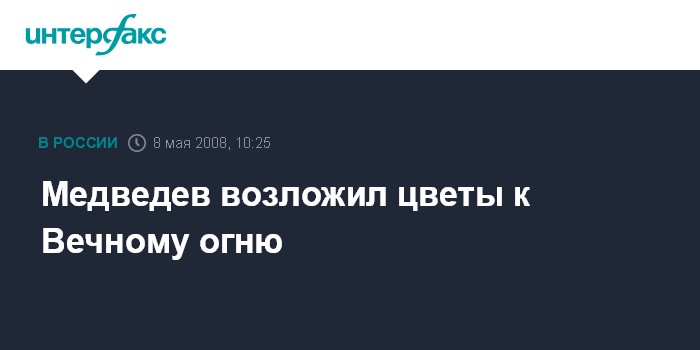 Москва. 8 мая. INTERFAX.RU - Президент России Дмитрий Медведев в честь Дня Победы возложил венок из живых цветов к Вечному огню у могилы Неизвестного солдата в Александровском саду столицы.