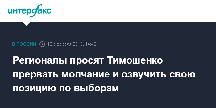 Регионалы просят Тимошенко прервать молчание и озвучить свою позицию по выборам