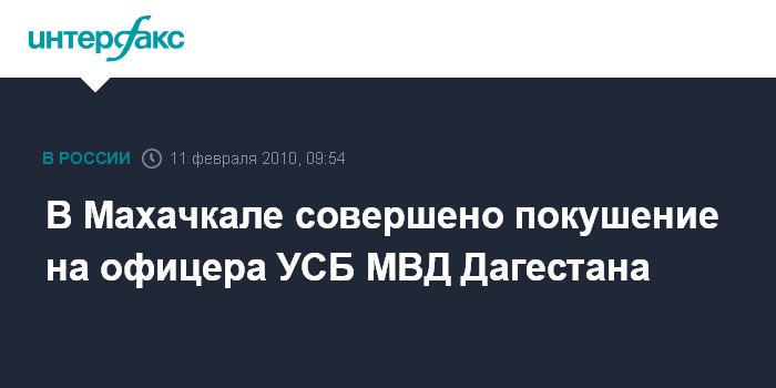 В пресс-службе МВД Дагестана "Интерфаксу" сообщили, что покушение на офицера было совершено в четверг в 8:50 на проспекте Акушинского.