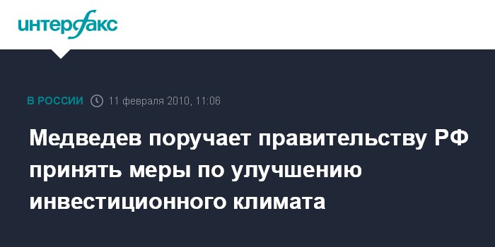 Медведев поручает правительству РФ принять меры по улучшению инвестиционного климата