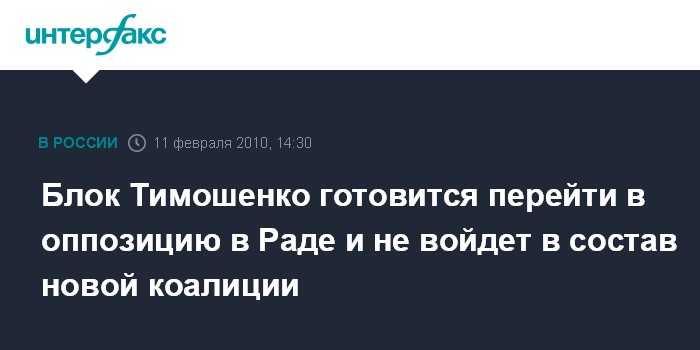 Москва. 11 февраля. INTERFAX.RU – Блок Юлии Тимошенко не будет работать в составе новой коалиции в случае признания законности результатов президентских выборов и объявления Виктора Януковича президентом Украины, заявил вице-спикер Николай Томенко из БЮТ.