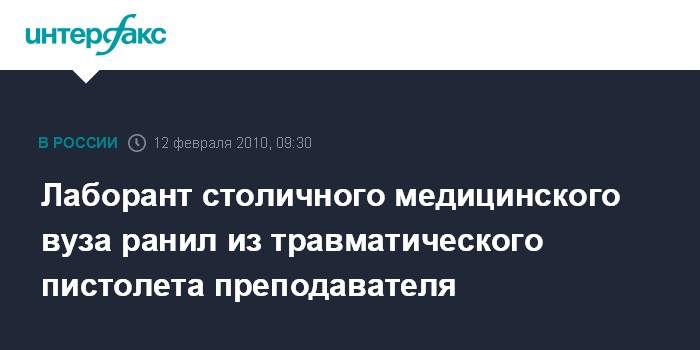 Москва. 12 февраля. INTERFAX.RU – Возбуждено уголовное дело в отношении лаборанта кафедры одного из московских медицинских вузов, который ранил из травматического пистолета преподавателя этого учебного заведения, сообщил в пятницу "Интерфаксу" источник в правоохранительных органах города.