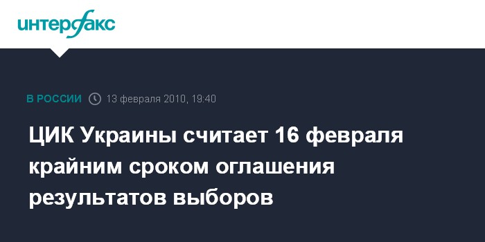 ЦИК Украины считает 16 февраля крайним сроком оглашения результатов выборов