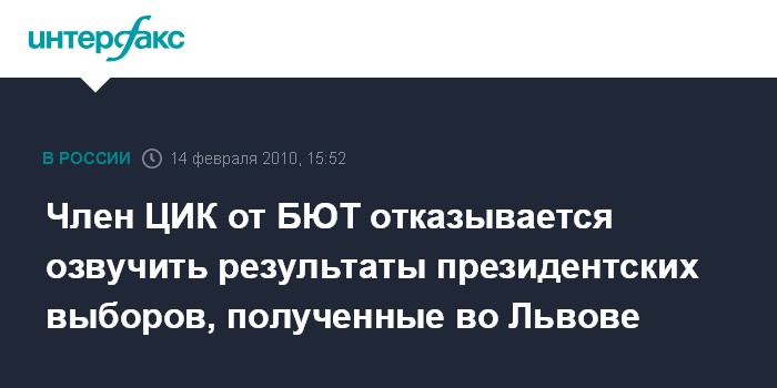 Киев. 14 февраля. INTERFAX.RU - Член Центральной избирательной комиссии Украины Жанна Усенко-Черная отказалась оглашать данные об итогах голосования во втором туре выборов президента в территориальном округе N120 (Львов).