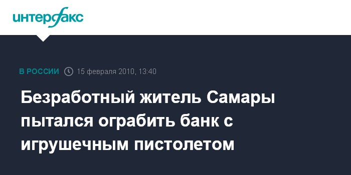 Самара. 15 февраля. INTERFAX.RU - В Самаре расследуют уголовное дело в отношении местного жителя, который, потеряв работу, решил ограбить банк с помощью игрушечного пистолета.