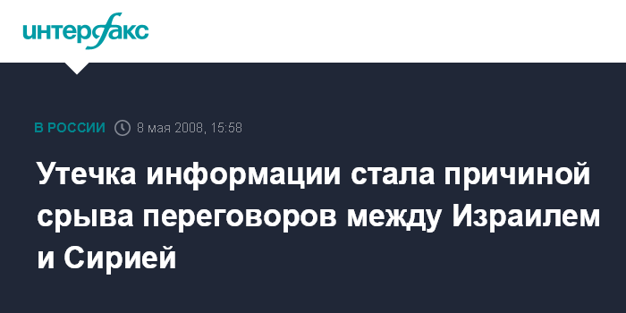 Утечка информации стала причиной срыва переговоров между Израилем и Сирией