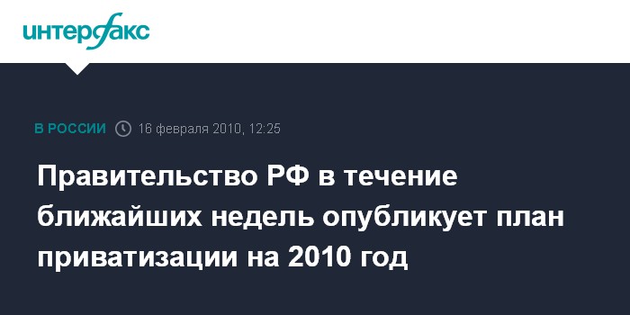 Правительство РФ в течение ближайших недель опубликует план приватизации на 2010 год