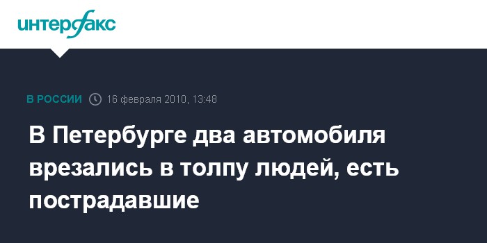 Санкт-Петербург. 16 февраля. INTERFAX.RU - На севере Петербурга во вторник днем два автомобиля врезались в толпу людей, сообщил "Интерфаксу" источник в правоохранительных органах города.