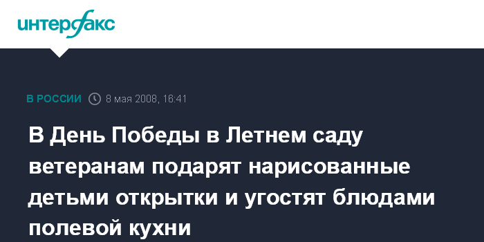 В День Победы в Летнем саду ветеранам подарят нарисованные детьми открытки и угостят блюдами полевой кухни