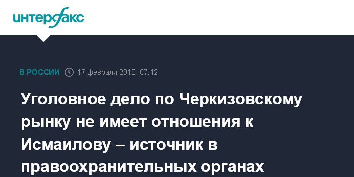 Уголовное дело по Черкизовскому рынку не имеет отношения к Исмаилову – источник в правоохранительных органах