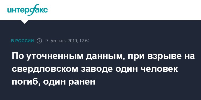 По уточненным данным, при взрыве на свердловском заводе один человек погиб, один ранен
