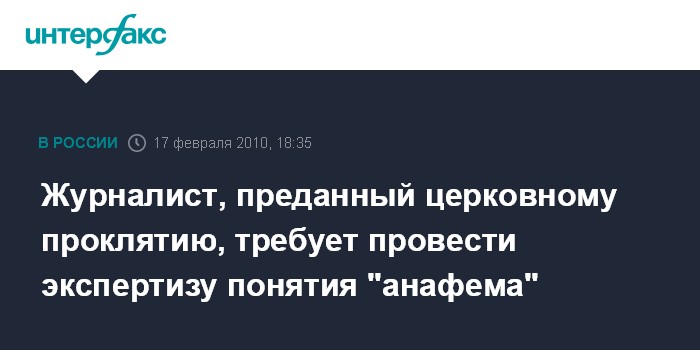 Журналист, преданный церковному проклятию, требует провести экспертизу понятия "анафема"