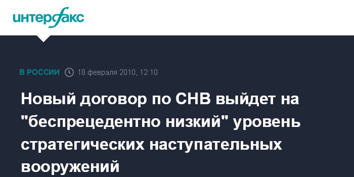 Москва. 18 февраля. INTERFAX.RU – Новый договор о СНВ зафиксирует беспрецедентно низкий уровень стратегических наступательных вооружений, сообщил глава МИД РФ Сергей Лавров.