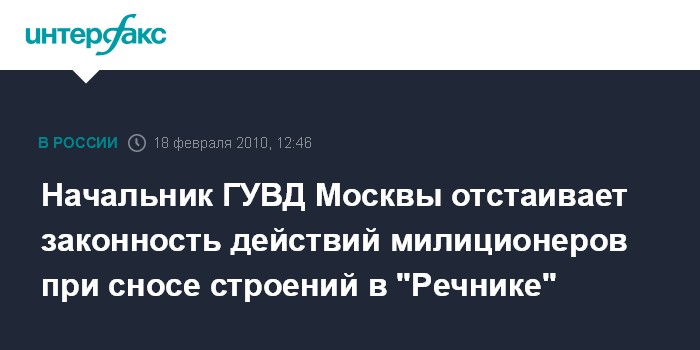 Начальник ГУВД Москвы отстаивает законность действий милиционеров при сносе строений в "Речнике"