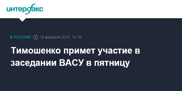 Тимошенко примет участие в заседании ВАСУ в пятницу